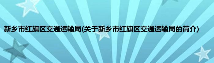 大家好,新乡市红旗区交通运输局,关于新乡市红旗区交通运输局的简介很多人还不知道,现在让我们一起来看看吧!