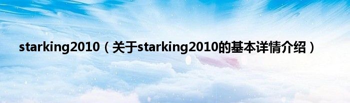 本文关于starking2010的基本详情介绍就讲解完毕,希望对大家有所帮助。