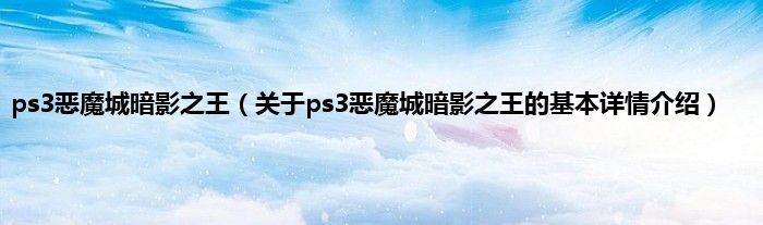 本文关于ps3恶魔城暗影之王的基本详情介绍就讲解完毕,希望对大家有所帮助。