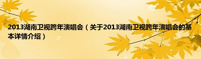 本文关于2013湖南卫视跨年演唱会的基本详情介绍就讲解完毕,希望对大家有所帮助。