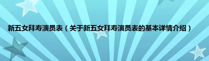 本文关于新五女拜寿演员表的基本详情介绍就讲解完毕,希望对大家有所帮助。