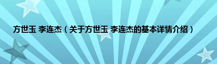 方世玉 李连杰(关于方世玉 李连杰的基本详情介绍)