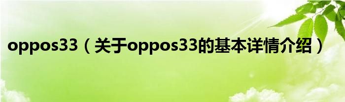 本文关于oppos33的基本详情介绍就讲解完毕,希望对大家有所帮助。