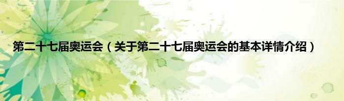 本文关于第二十七届奥运会的基本详情介绍就讲解完毕,希望对大家有所帮助。