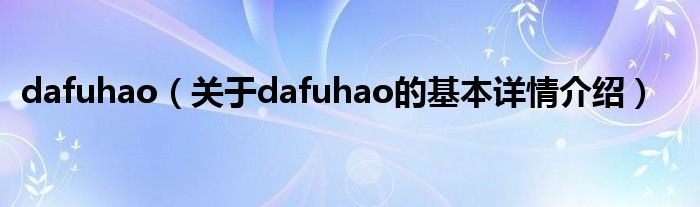 本文关于dafuhao的基本详情介绍就讲解完毕,希望对大家有所帮助。
