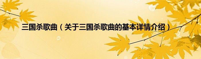 本文关于三国杀歌曲的基本详情介绍就讲解完毕,希望对大家有所帮助。