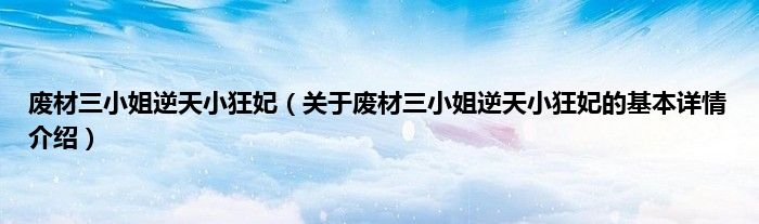 本文关于废材三小姐逆天小狂妃的基本详情介绍就讲解完毕,希望对大家有所帮助。
