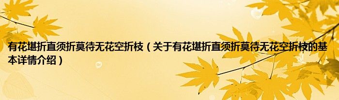 本文关于有花堪折直须折莫待无花空折枝的基本详情介绍就讲解完毕,希望对大家有所帮助。