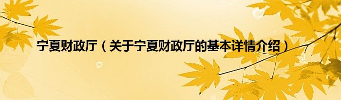 本文关于宁夏财政厅的基本详情介绍就讲解完毕,希望对大家有所帮助。