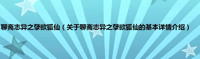 本文关于聊斋志异之孽欲狐仙的基本详情介绍就讲解完毕,希望对大家有所帮助。