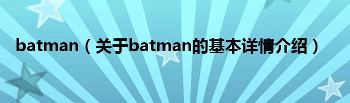 本文关于batman的基本详情介绍就讲解完毕,希望对大家有所帮助。