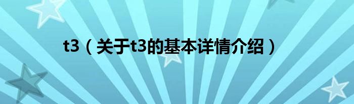 大家好我是小蝌蚪,t3,关于t3的基本详情介绍很多人还不知道,那么现在让我们一起来看看吧!
