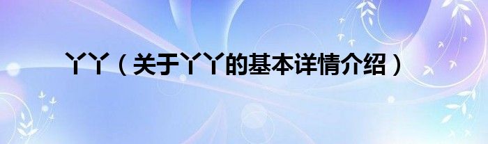 本文关于丫丫的基本详情介绍就讲解完毕,希望对大家有所帮助。