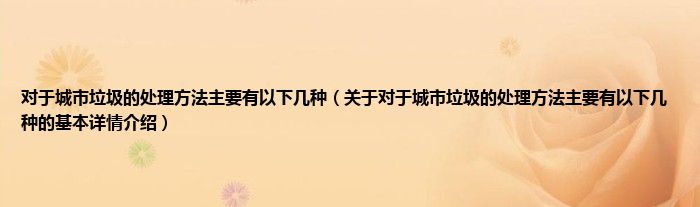 本文关于对于城市垃圾的处理方法主要有以下几种的基本详情介绍就讲解完毕,希望对大家有所帮助。