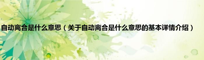 自动离合是什么意思(关于自动离合是什么意思的基本详情介绍)
