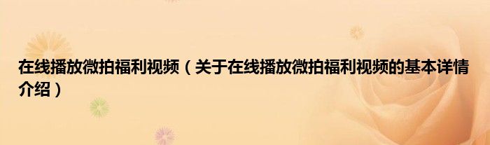 本文关于在线播放微拍福利视频的基本详情介绍就讲解完毕,希望对大家有所帮助。