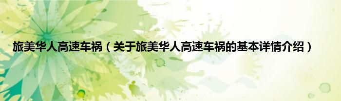 本文关于旅美华人高速车祸的基本详情介绍就讲解完毕,希望对大家有所帮助。