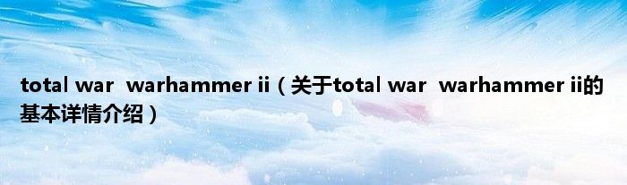 本文关于total war warhammer ii的基本详情介绍就讲解完毕,希望对大家有所帮助。