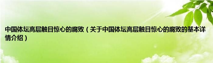 本文关于中国体坛高层触目惊心的腐败的基本详情介绍就讲解完毕,希望对大家有所帮助。