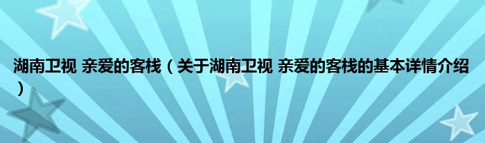本文关于湖南卫视 亲爱的客栈的基本详情介绍就讲解完毕,希望对大家有所帮助。