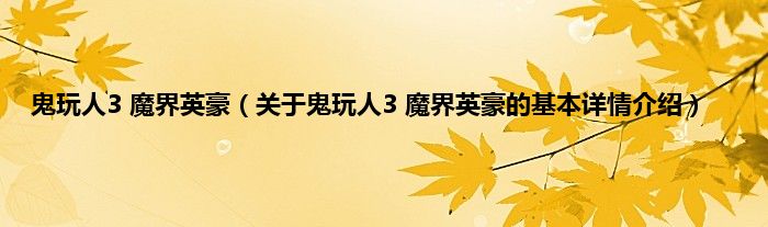 本文关于鬼玩人3 魔界英豪的基本详情介绍就讲解完毕,希望对大家有所帮助。