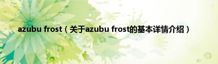 本文关于azubu frost的基本详情介绍就讲解完毕,希望对大家有所帮助。