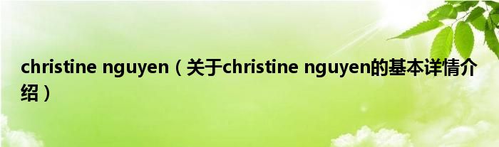 本文关于christine nguyen的基本详情介绍就讲解完毕,希望对大家有所帮助。