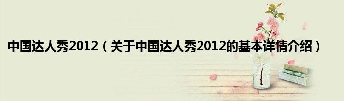 本文关于中国达人秀2012的基本详情介绍就讲解完毕,希望对大家有所帮助。