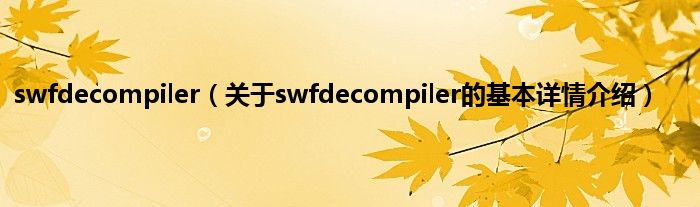 本文关于swfdecompiler的基本详情介绍就讲解完毕,希望对大家有所帮助。
