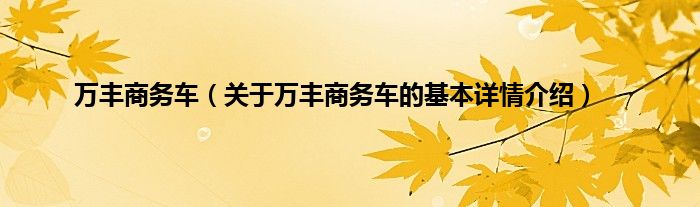 本文关于万丰商务车的基本详情介绍就讲解完毕,希望对大家有所帮助。