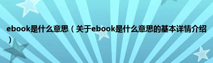 本文关于ebook是什么意思的基本详情介绍就讲解完毕,希望对大家有所帮助。