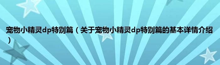 本文关于宠物小精灵dp特别篇的基本详情介绍就讲解完毕,希望对大家有所帮助。
