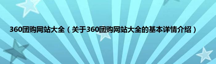 本文关于360团购网站大全的基本详情介绍就讲解完毕,希望对大家有所帮助。