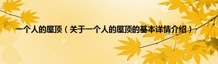 本文关于一个人的屋顶的基本详情介绍就讲解完毕,希望对大家有所帮助。