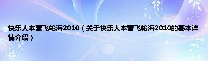 本文关于快乐大本营飞轮海2010的基本详情介绍就讲解完毕,希望对大家有所帮助。