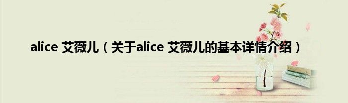 本文关于alice 艾薇儿的基本详情介绍就讲解完毕,希望对大家有所帮助。