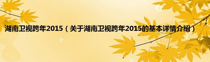 本文关于湖南卫视跨年2015的基本详情介绍就讲解完毕,希望对大家有所帮助。