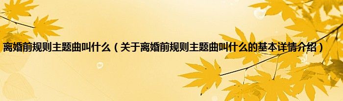 离婚前规则主题曲叫什么(关于离婚前规则主题曲叫什么的基本详情介绍)
