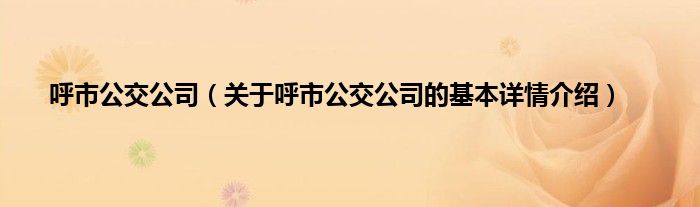 呼市公交公司(关于呼市公交公司的基本详情介绍)