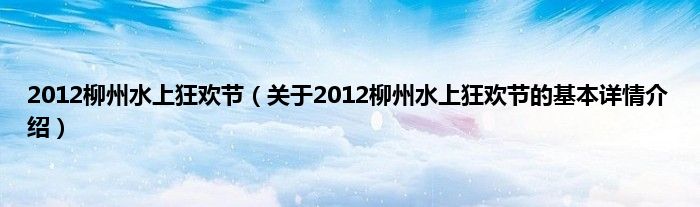 本文关于2012柳州水上狂欢节的基本详情介绍就讲解完毕,希望对大家有所帮助。