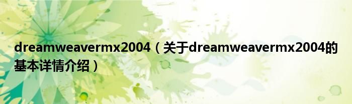 本文关于dreamweavermx2004的基本详情介绍就讲解完毕,希望对大家有所帮助。