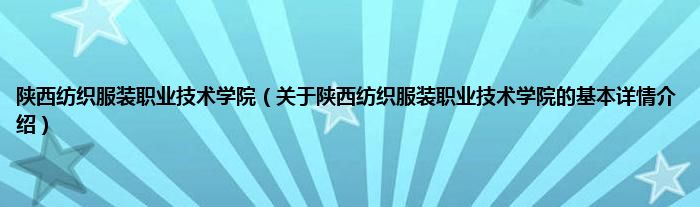 本文关于陕西纺织服装职业技术学院的基本详情介绍就讲解完毕,希望对大家有所帮助。