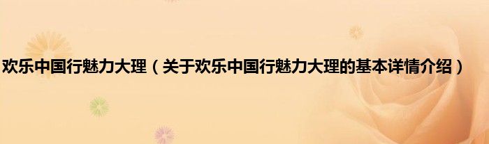 本文关于欢乐中国行魅力大理的基本详情介绍就讲解完毕,希望对大家有所帮助。