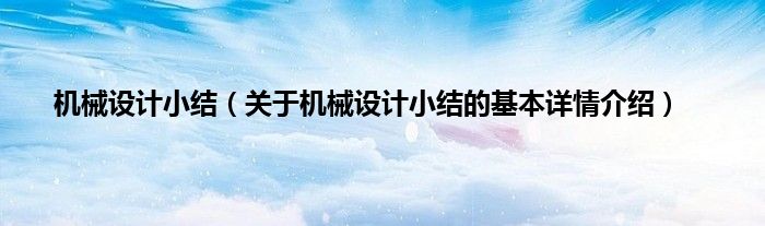 本文关于机械设计小结的基本详情介绍就讲解完毕,希望对大家有所帮助。