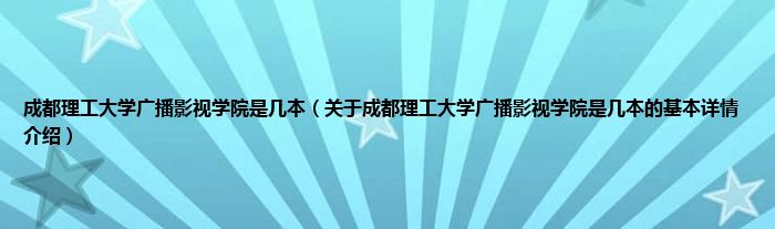 本文关于成都理工大学广播影视学院是几本的基本详情介绍就讲解完毕,希望对大家有所帮助。