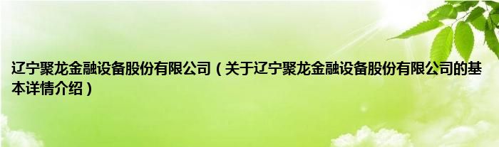 本文关于辽宁聚龙金融设备股份有限公司的基本详情介绍就讲解完毕,希望对大家有所帮助。