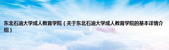 本文关于东北石油大学成人教育学院的基本详情介绍就讲解完毕,希望对大家有所帮助。