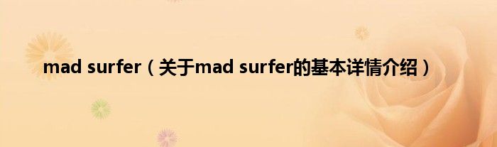 本文关于mad surfer的基本详情介绍就讲解完毕,希望对大家有所帮助。
