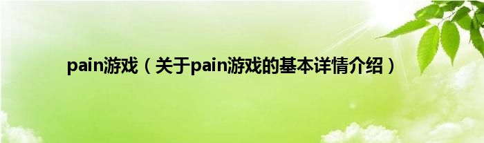 本文关于pain游戏的基本详情介绍就讲解完毕,希望对大家有所帮助。