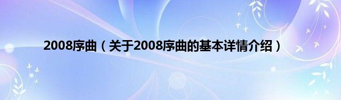 本文关于2008序曲的基本详情介绍就讲解完毕,希望对大家有所帮助。